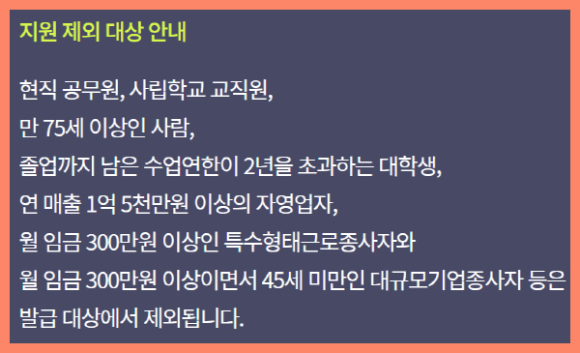 이와 같은 제외 대상이 있는 이유는, 정부의 지원이 진정 필요한 대상에게 효과적으로 전달될 수 있도록 하기 위함입니다.