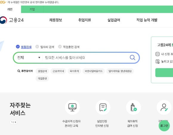 가까운 고용센터 방문 또는 고용24 온라인 신청