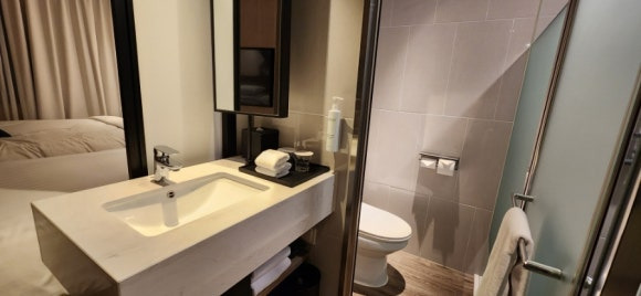 - 화장실 문이 하나라 샤워실과 변기 공간을 공유하는 독특한 구조 (이 점은 호불호가 갈릴 수 있음)